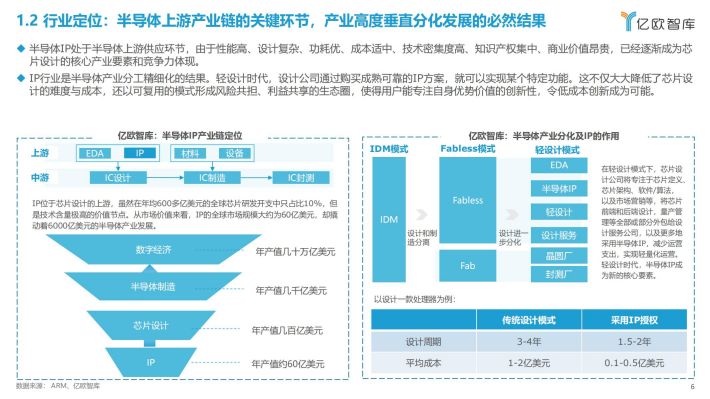 IP行业是半导体产业分工精细化的结果。轻设计时代,设计公司通过购买成熟可靠的IP方案,就可以实现某个特定功能。这不仅大大降低了芯片设计的难度与成本,还以可复用的模式形成风险共担、利益共享的生态圈,使得用户能专注自身优势价值的创新性,令低成本创新成为可能。
