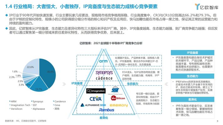 半导体IP处于半导体上游供应环节,由于性能高、设计复杂、功耗优、成本适中、技术密集度高、知识产权集中、商业价值昂贵,已经逐渐成为芯片设计的核心产业要素和竞争力体现。