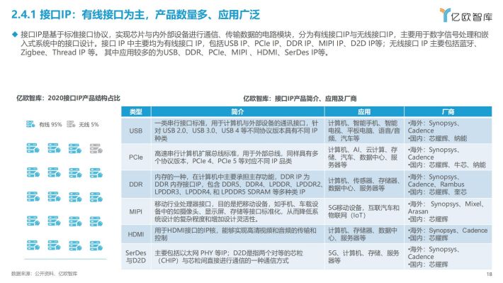 半导体IP按交付方式可分为软核、硬核和固核;按产品类型可分为处理器IP、接口IP、其他物理IP及其他数字IP。由于其他数字IP无专门厂商,本报告主要对前三类半导体IP进行细分分析。