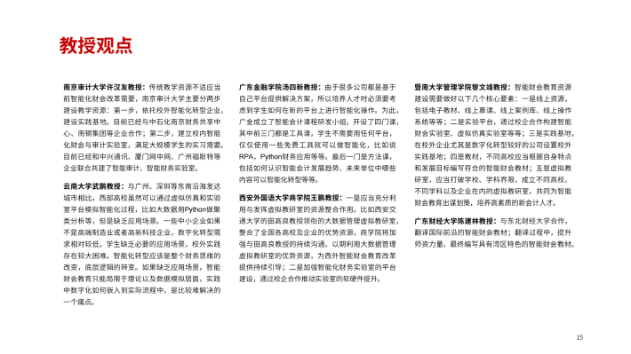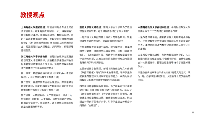 211高校设计智能财会培养方案时出了将就业以及服务于国家战略作为重要因素之外,还非常重视财会标准和行业监管的不断变化。ACCA专业洞察报告《财智重塑美好世界:财会行业转型所需关注的优先事项》将“促进标准与监管”列为财会行业的七大核心优先事项之一。从企业报告的未来形态,日益严峻的环境紧急事件,到数字经济的扩张,再到新兴融资渠道和加密货币等支付监管领域的发展,有效监管的落实将离不开标准制定方面的全球协同,并随着风险的变化做出快速监管响应。