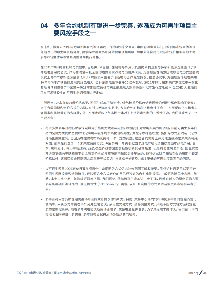 在此背景下,未来几年对中国实现碳达峰和持续推进电力市场化改革至关重要。首先,目前各省在现货市场和辅助服务市场等短周期交易方面普遍刚刚起步,亟待进一步巩固基础、形成连续机制。第二,在可再生多年合约这样的长周期交易方面,目前的机制尚未真正发挥稳定投资预期、大规模吸引社会资本的作用,仍然有很大改善空间。第三,在2025初步建成全国统一电力市场体系的目标下,目前在多层次市场协同运行、跨省跨区灵活调度与交易方面仍面临众多挑战,迫切需要打破行政壁垒、优化资源配置。我们判断,上述提到的几个方向,在接下来几年都会有比较密集的改革动作,需要保持密切关注。