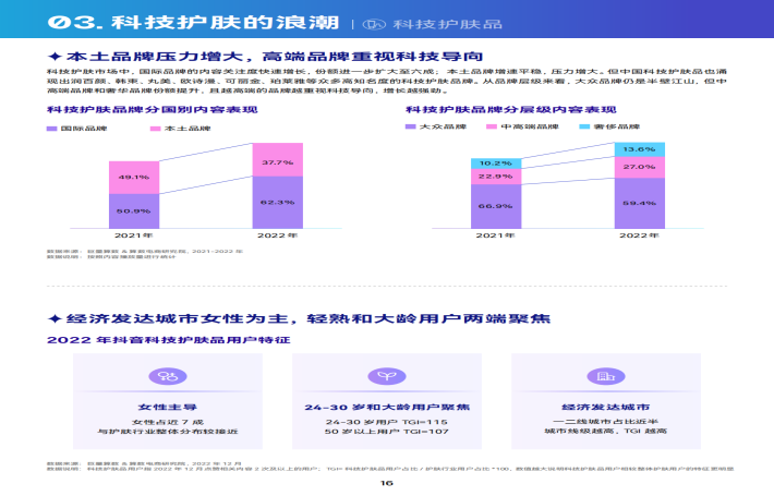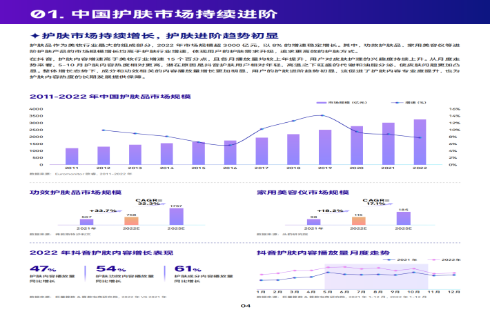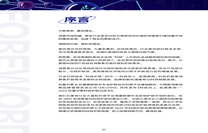 巨量引擎&巨量算数联合专业护肤知识科普平台基础频究、中国新消费龄略品牌管理咨询公司OIBCHNA,共同发布《科技向上,肌源美丽一2023巨量引擎科技护肤白皮书》。