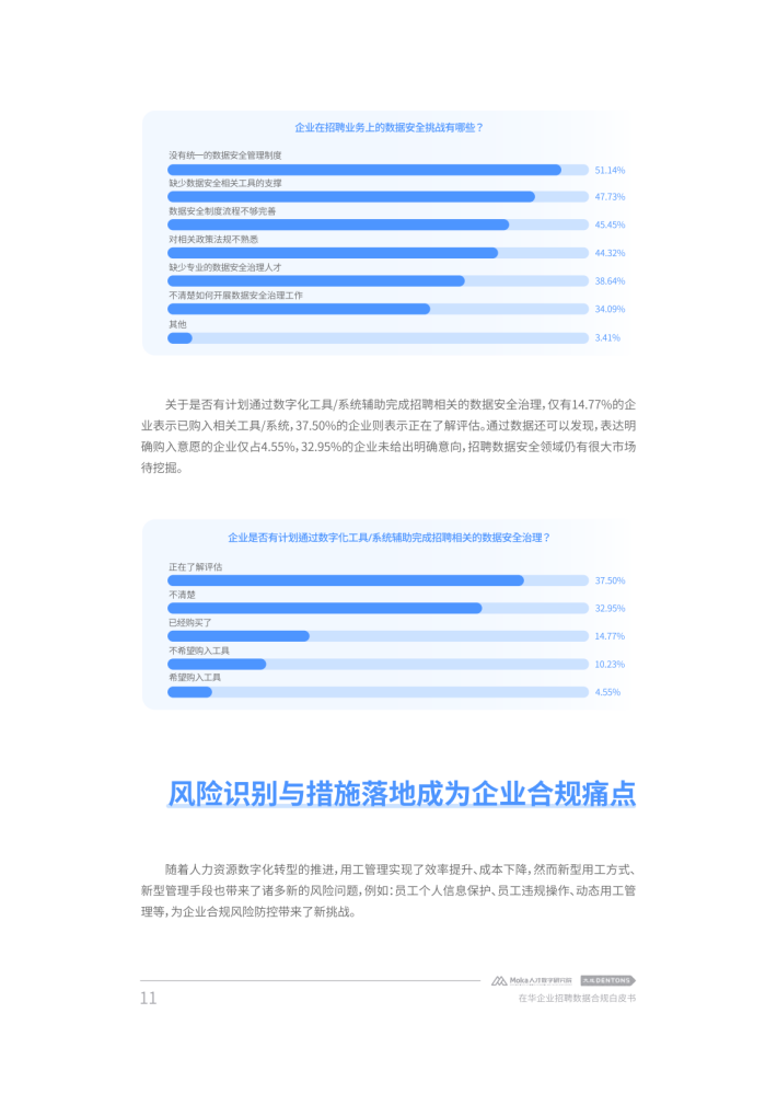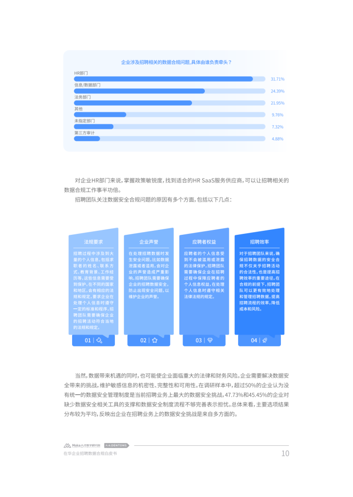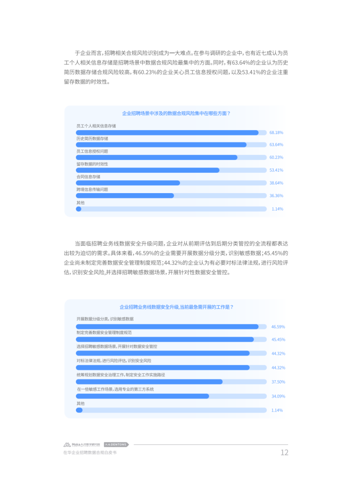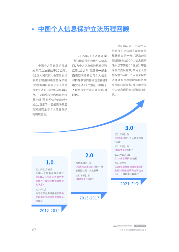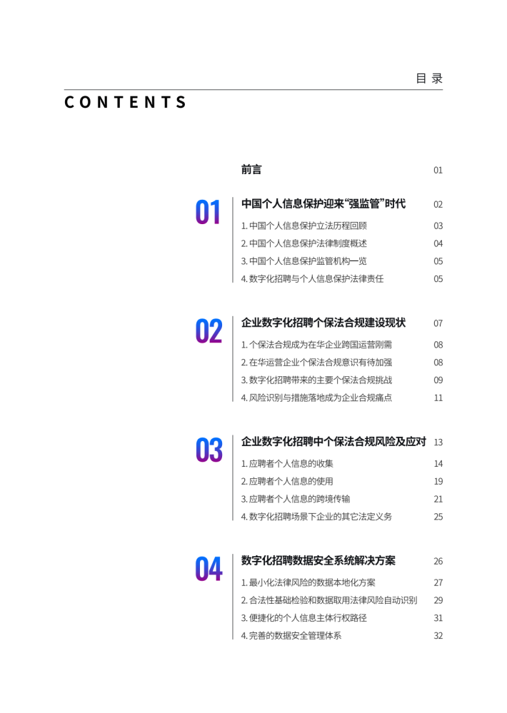 加强个人信息与数据保护也被提升至新高度,一系列法规与政策措施陆续出台以加强数据保护。在提升自身数字化能力、加强数字化转型以应对日益激烈的市场竞争时,企业在数据收集、数据传输等诸多环节也产生了法律合规需求。由于人力资源管理不仅是企业管理体系的核心功能,也是获得持续竞争力的关键所在,很多企业都将人力资源管理数字化转型与个人信息保护和数据安全管理提升至新的高度。对此,本白皮书从企业人力资源管理需求出发,以近年来我国个人信息和数据保护相关政策法规的最新发展为视角,对在华企业数字化招聘面临的合规困境进行了深度分析,并结合法律实务和技术实践提供了相应参考建议。