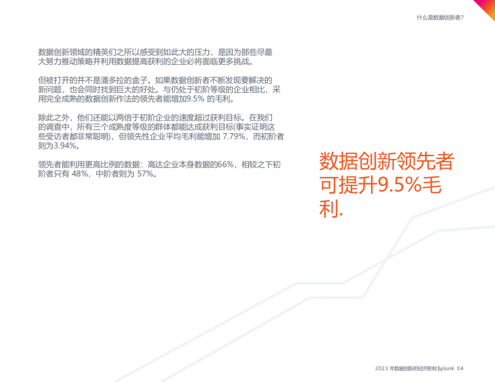 但被打开的并不是潘多拉的盒子。如果数据创新者不断发现要解决的新问题,也会同时找到巨大的好处。与仍处于初阶等级的企业相比,采用完全成熟的数据创新作法的领先者能增加9.5%的毛利。