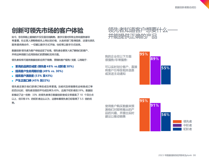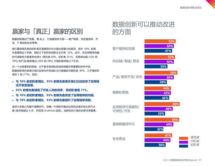 领先者能利用更高比例的数据:高达企业本身数据的66%,相较之下初阶者只有48%,中阶者则为57%。