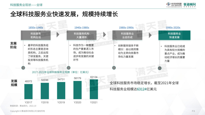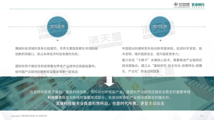 在新一轮科技革命和产业变革的带动下,全球产业结构呈现出从“工业型经济”向“服务型经济”加速转型的重大转变,三次产业正在进行深度跨界和融合发展,科技服务业在这一过程中发挥着越来越重要的作用。