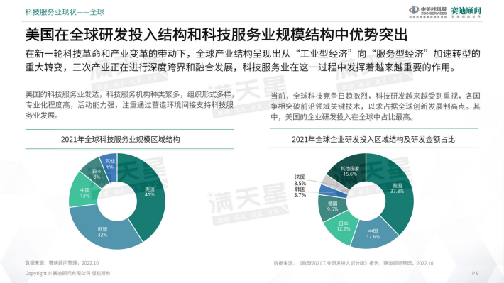 美国在全球研发投入结构和科技服务业规模结构中优势突出