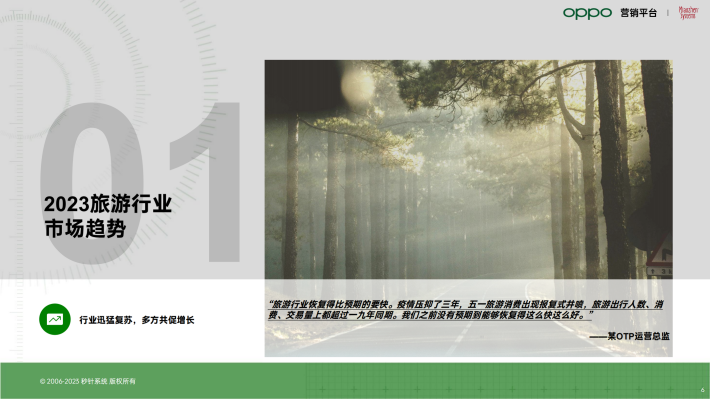 2023年,疫情防控政策调整,消费市场在波动中恢复;旅游行业作为疫情中饱受冲击的行业,在曙光中迎来复苏。在线旅游平台快速重启生意,布局各类旅游服务产品,积极进行营销拓展及合作,以把握行业重启机遇。