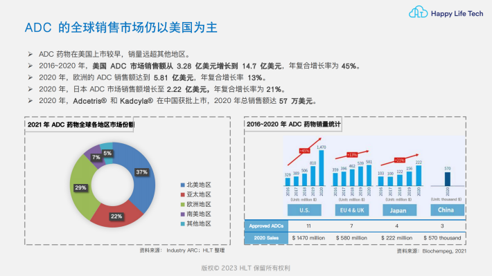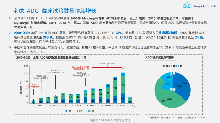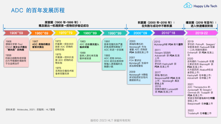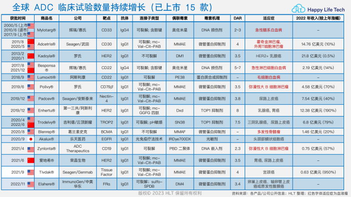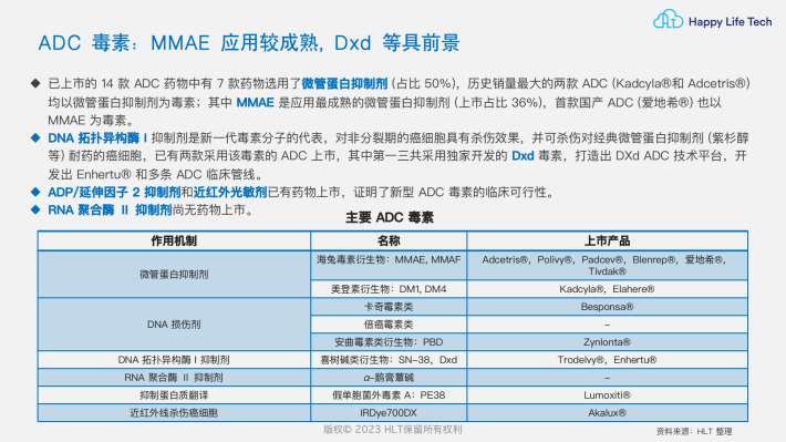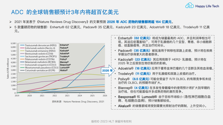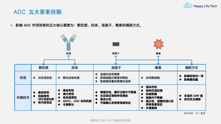 特点:ADC结合了抗体药物的靶向特异性&细胞毒素的强大杀伤力,同时克服了单抗的细胞毒性弱&强效细胞毒素毒性大的问题,这样的组合使候选药物分子的数量呈指数级增长。