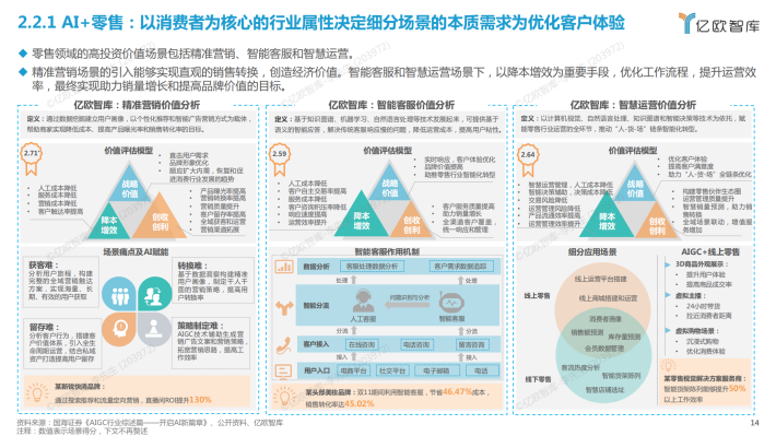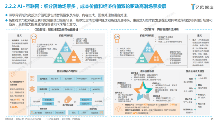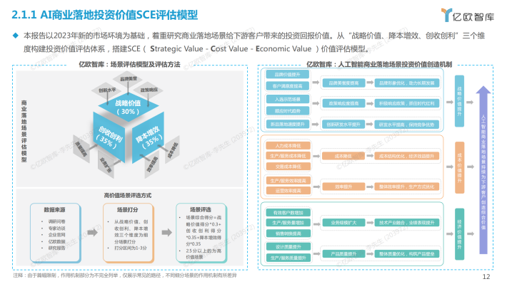 AI商业落地投资价值指AI商业落地场景给下游甲方企业带来的综合投资价值,本报告从“战略价值、降本增效和创收创利”三个层面衡量AI商业落地场景为企业带来的经济、成本和战略价值。