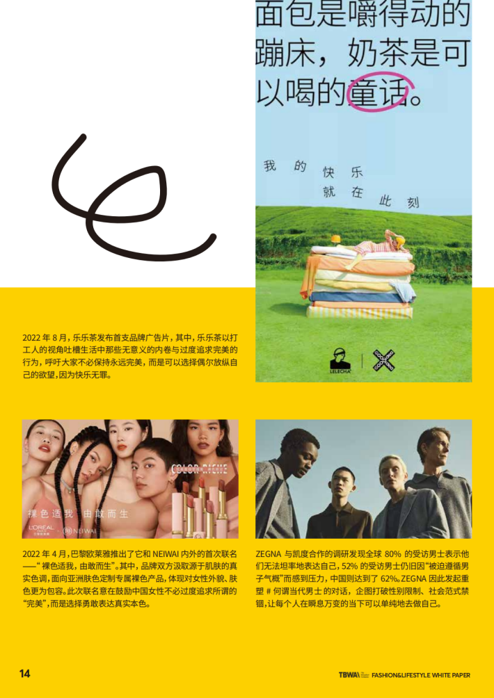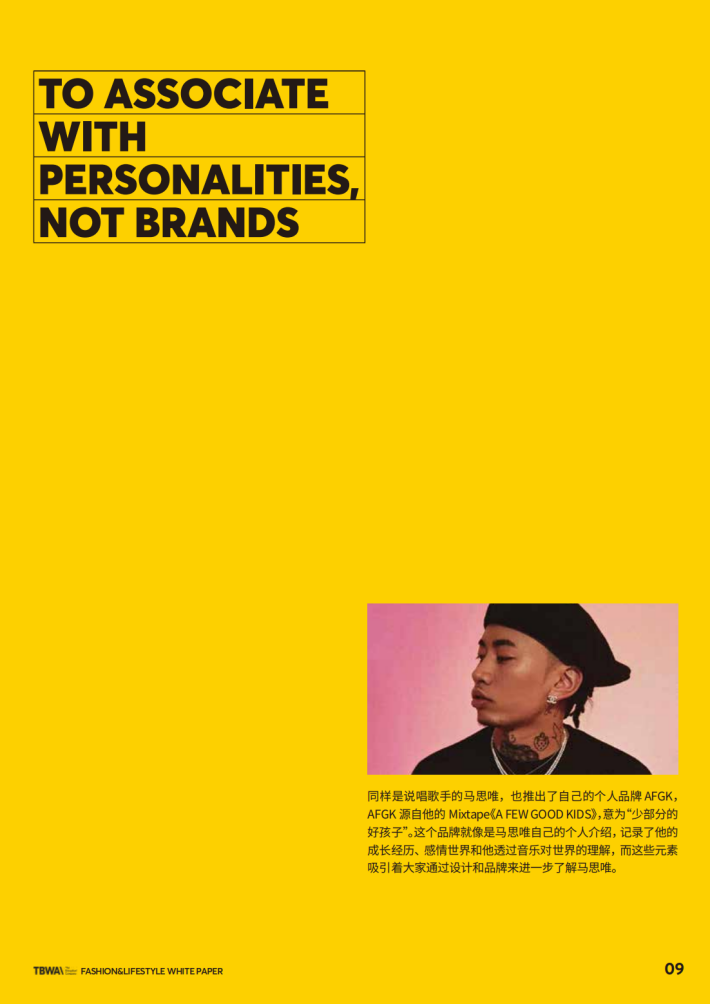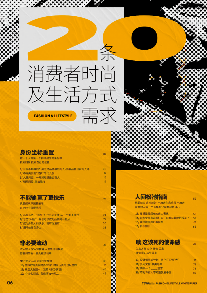 在TBWAEDGES工具的帮助之下,我们有了科学严密的研究方法论。同时,经过了没日没夜、充满争辩和酒精的过程,我们总结出了20条Z世代对于时尚的需求。这些需求在时尚领域内引人注目,同时也正在其他领域展露苗头。