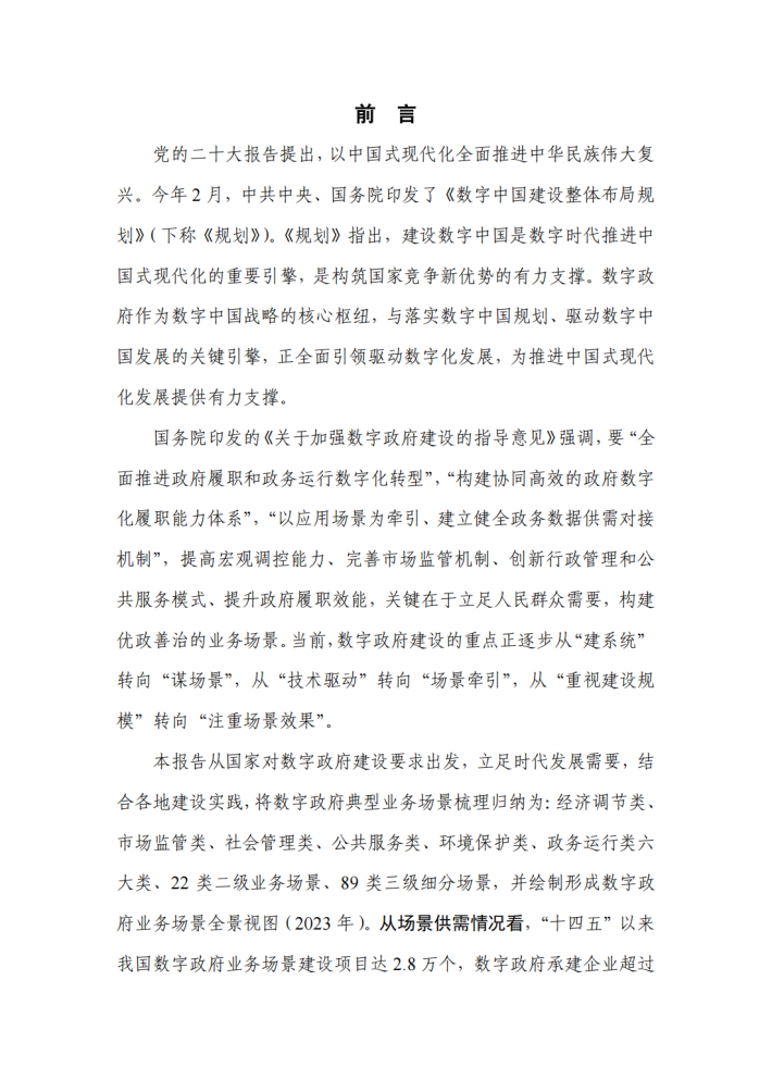 国务院印发的《关于加强数字政府建设的指导意见》强调,要“全面推进政府履职和政务运行数字化转型”,“构建协同高效的政府数字化履职能力体系”,"以应用场景为牵引、建立健全政务数据供需对接机制”,提高宏观调控能力、完善市场监管机制、创新行政管理和公共服务模式、提升政府履职效能,关键在于立足人民群众需要,构建优政善治的业务场景。当前,数字政府建设的重点正逐步从“建系统”转向“谋场景”,从“技术驱动”转向“场景牵引”,从“重视建设规模”转向“注重场景效果”。