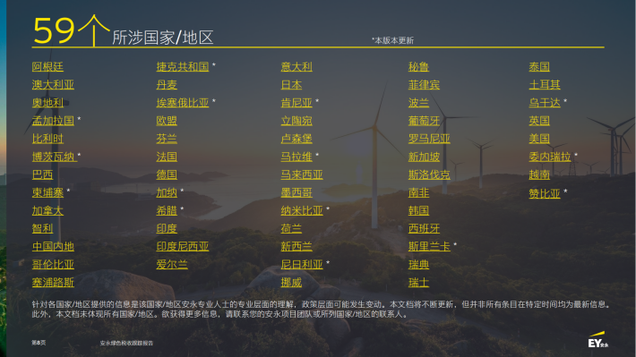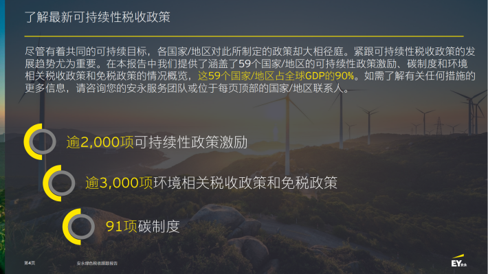 尽管有着共同的可持续目标,各国家/地区对此所制定的政策却大相径庭。紧跟可持续性税收政策的发展趋势尤为重要。在本报告中我们提供了涵盖了59个国家/地区的可持续性政策激励、碳制度和环境相关税收政策和免税政策的情况概览,这59个国家/地区占全球GDP的90%。