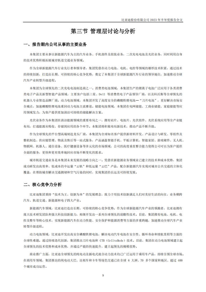 作为全球新能源汽车行业先行者和领导者,集团凭借在动力电池、电机、电控等领域的雄厚技术积累,通过技术的持续创新,打造出长期、可持续的核心竞争优势,奠定了本集团于全球新能源汽车行业的领导地位,加速推动全球汽车产业转型升级进程。