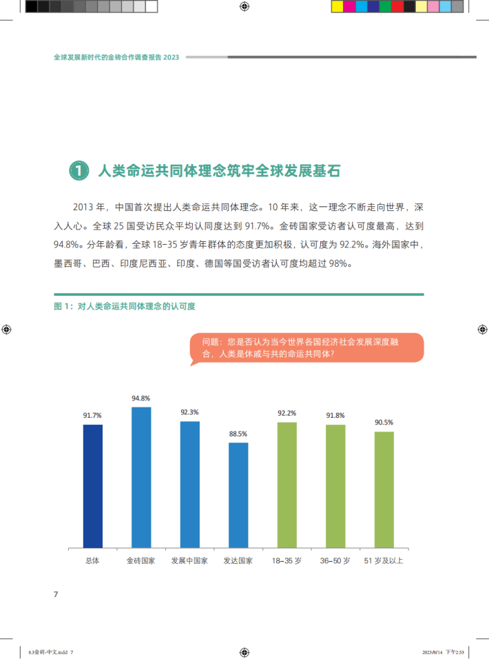 本次调查从理念共识、发展能力、全球贡献、未来展望等角度,较为全面地展现了全球25国民众对于全球发展新形势下金砖合作的评价和期待。调查采用在线网络调查法,通过零点有数的全球样本库及ESOMAR全球合作网络体系进行数据收集,严格执行在线调查的国际标准。调查方法和设计确保数据代表性,并支持数据对比的连续性。