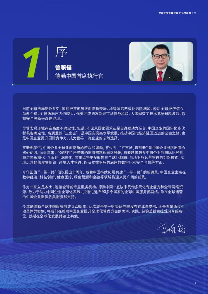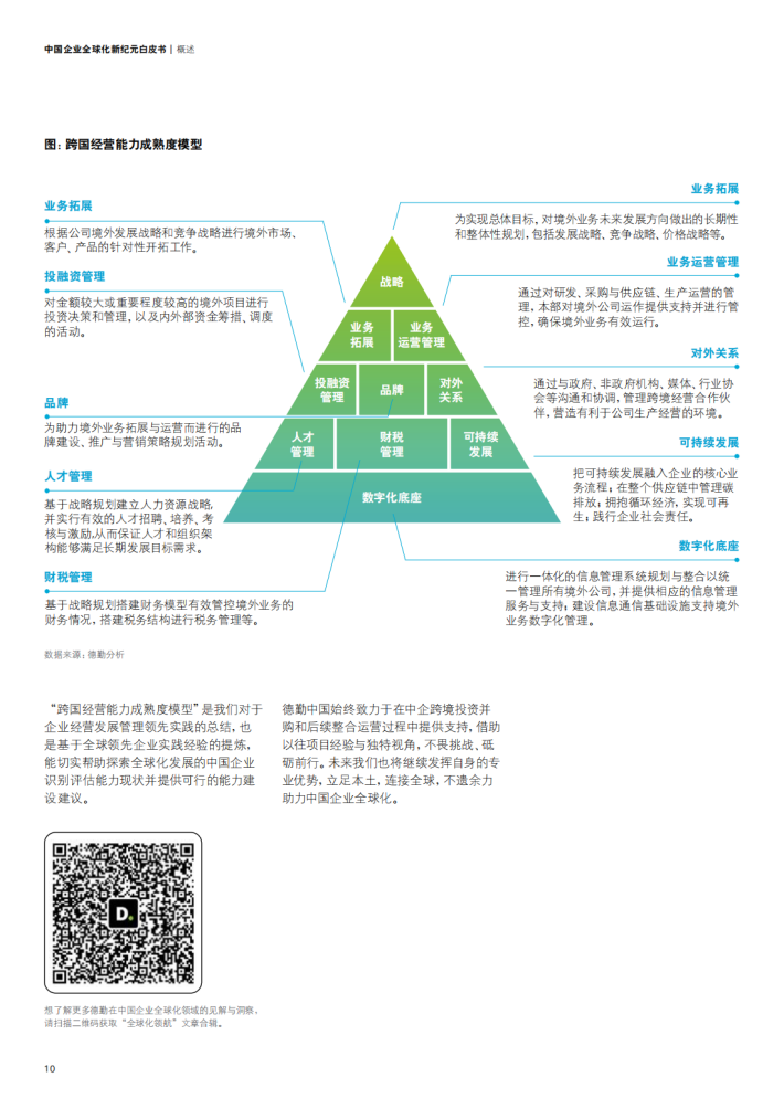 在新形势下,中国企业全球化面临新的使命和课题。在过去,“扩市场、谋创新”是中国企业寻求出海的核心动因;而近年来,“强韧性”所带来的出海需求也日益显著。随着越来越多中国企业的国际化经营将走向长期化、全面化、深度化,其重点将更多聚焦在全球化战略、当地业务运营管理的组织模式、实现运营的供应链组织、跨境人才管理,以及支撑业务的底座的数字化和安全合规等方面。