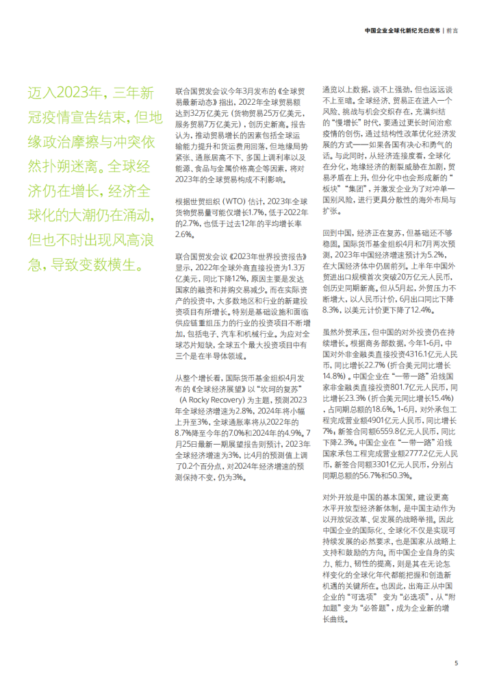 迈入2023年,三年新冠疫情宣告结束,但地缘政治摩擦与冲突依然扑朔迷离。全球经济仍在增长,经济全球化的大潮仍在涌动,但也不时出现风高浪急,导致变数横生。