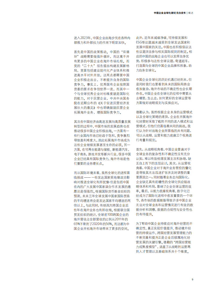 尽管宏观环境存在高度不确定性,但是,不论从国家要求还是自身驱动力而言,中国企业的国际化步伐都具备确定性。高质量的“走出去”,是中国实现高水平发展、推动中国向经济强国迈进的必由之路,也是中国企业提升国际竞争力,成为世界一流企业的必然选择。