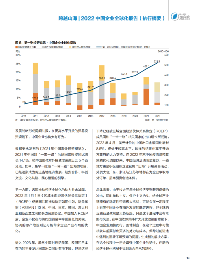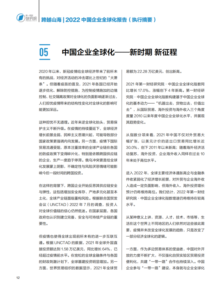 自2001年中国加入世界贸易组织(WTO)以来,中国与世界经济的联系快速加深,中国企业也积极加入全球产业链分工中,参与全球市场。根据世界贸易组织的数据,2021年中国货物贸易进出口总额占全球货物贸易总额的比重达到13.5%,创出新高,是2001年加入WTO之初的3倍多,中国已经成为全球最大的贸易国。