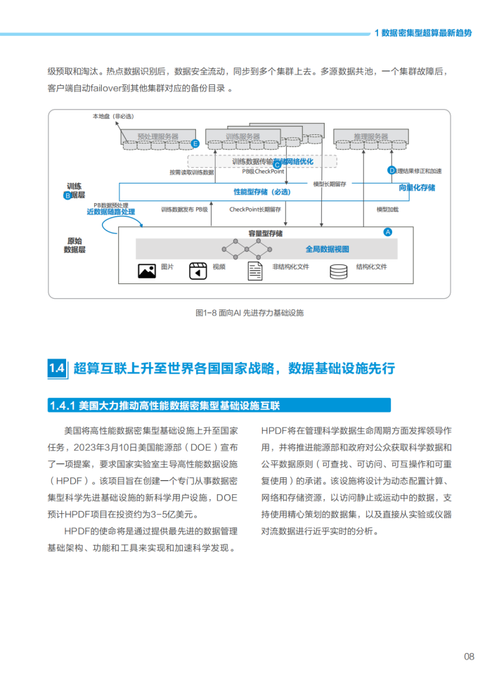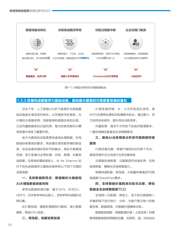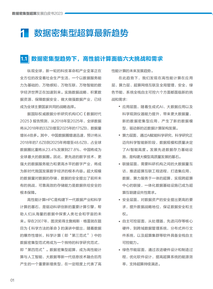 众所周知,高性能计算是国家综合国力和信息化建设能力的一个重要体现,被誉为“国之重器”。数据密集型超算,是高性能计算与人工智能、大数据等新一代信息技术融合后围绕数据价值,而产生的一个重要新增类型,是在高性能计算领域的一次有益的创新探索,在一定程度上代表了高性能计算的未来发展趋势。我们很欣喜地看到,在过去两年中数据密集型超算在产业各界的多方合作下持续创新,相继在商业应用、标准规范等取得了显著的进展。如文中所述,数据密集型超算在国家超算中心、高校等场景、基因测序、Al大模型等行业应用中产生了很多优秀实践。
