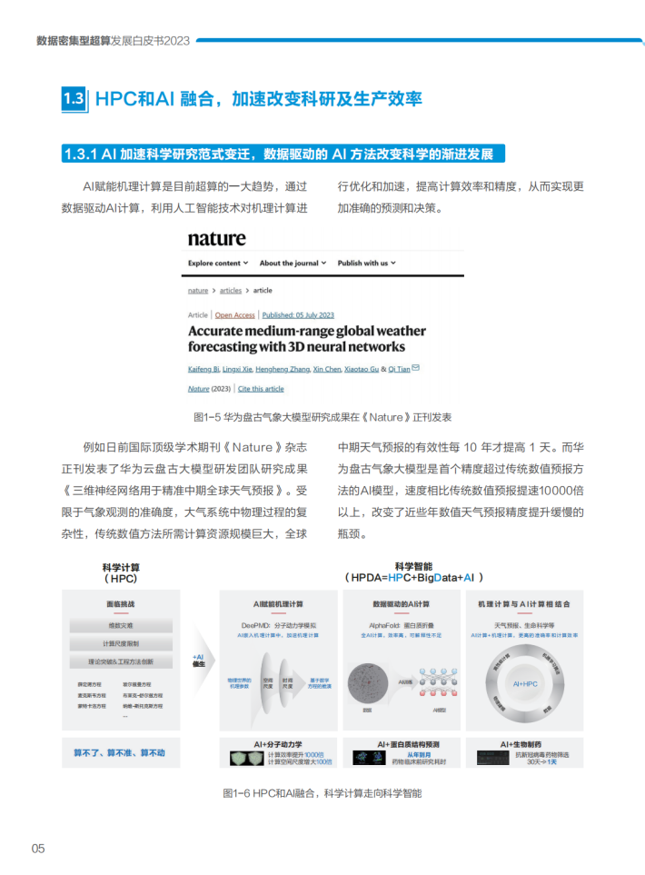 面向未来,以ChatGPT为代表的Al大模型兴起,数以千亿的参数投入训练,产生对算力和数据的双重需求。HPC与Al逐步走向融合,将成为数据密集型超算的典型应用场景。数据的准备至关重要,数据的质量和规模决定Al的精度。为了更好应对诸如新应用带来的生态复杂性变化、新业务催生的混合业务负载压力、新数据与算力协同带来的数据跨地域访问等挑战,白皮书中创新性地提出新型数据密集型超算5A架构,以应用为中心,较好地支撑HPDA(HPC+大数据+Al)多系统融合业务发展。