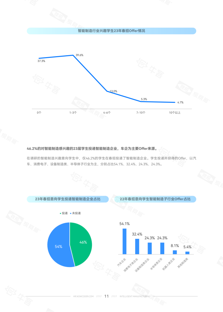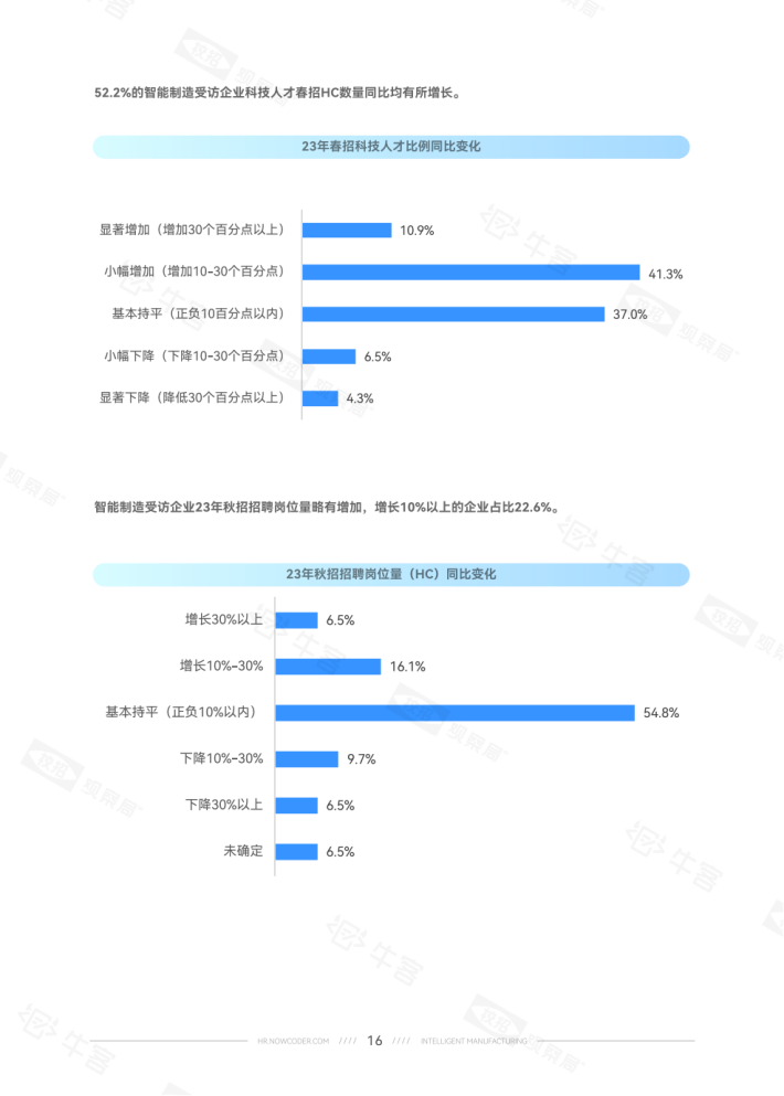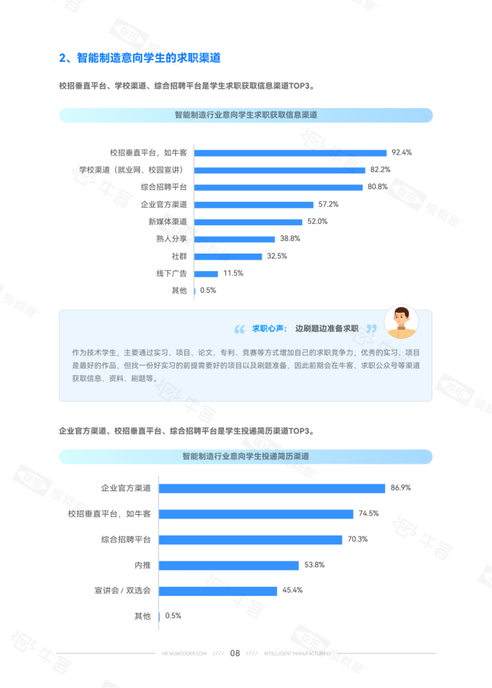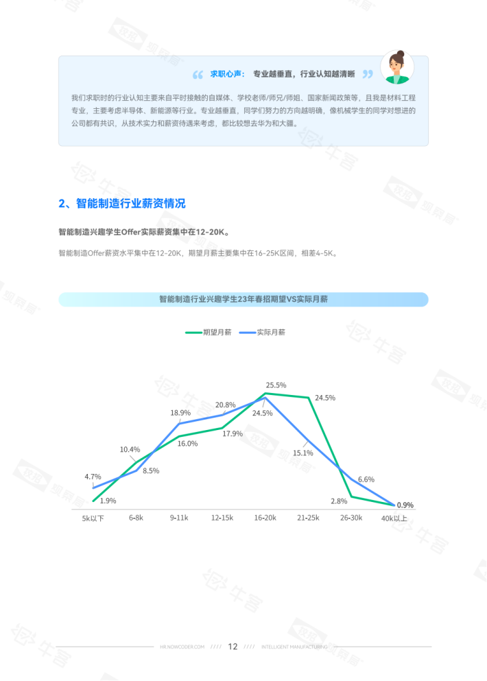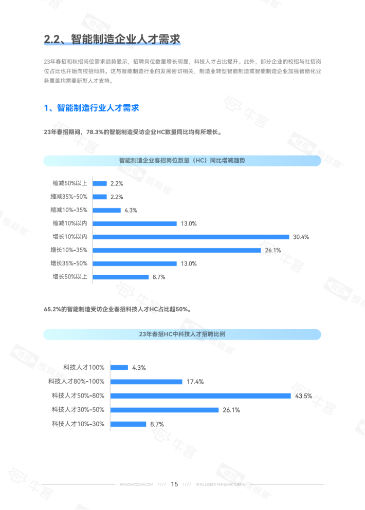 24届学生占比15.5%意向稍降。就学历而言,硕士生对智能制造的就业意向比本科生高约10个百分点。