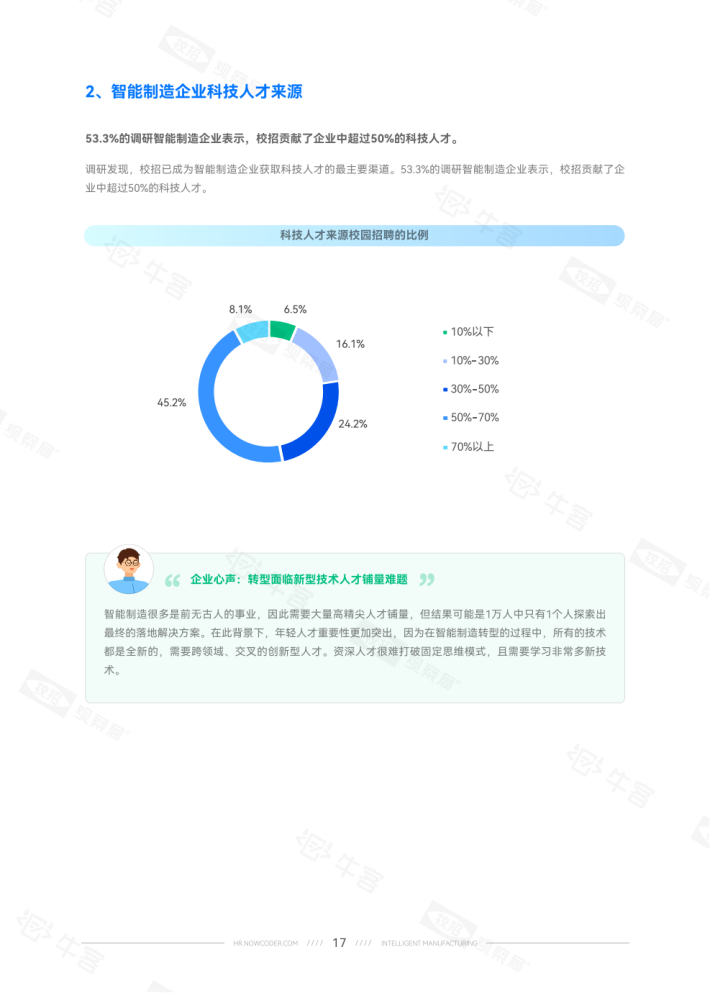 其中,结构性供需失衡问题更为关键,特别是“人才需求技能变化,人才存量不足”、“新兴技术人才需求量扩大”、“目标人才吸引力不足”三难问题。因此,聚焦发力校招拓展新兴年轻技术人才,成为智能制造企业的首选。