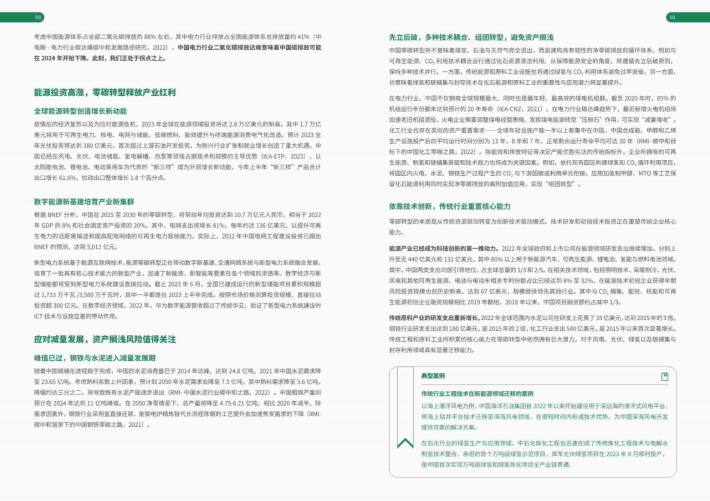 零碳转型不是一场零和博弈,而是高质量发展的必经之路:传统的一般均衡模型通常面临着“减排成本”的挑战,但产业的实际发展逻辑,包括规模效应和学习曲线等内生增长因素,需要通过非均衡模型考虑。根据2022年世界银行发布的中国国别气候与发展报告,采用非均衡模型测算,加速零碳转型将对中国经济产生积极影响——每年将额外带动1%到2.5%的增长,到2030年将创造530万个净新增就业岗位(WBG-中国国别气候与发展报告,2022)。通过建立全球最大的新型电力基础设施系统,培育具有全球竞争力的氢能、储能、可再生供热、碳捕集与封存利用等关键零碳技术的产业集群,不仅为中国带来资产回报,还将提高工业、建筑和交通等行业的运营效率,降低运行成本,同时创造附加值。这一举措将支持中国的高质量发展,同时为全球零碳目标提供实际可行的产业解决方案。
