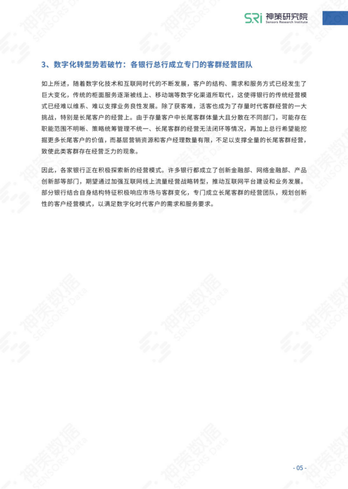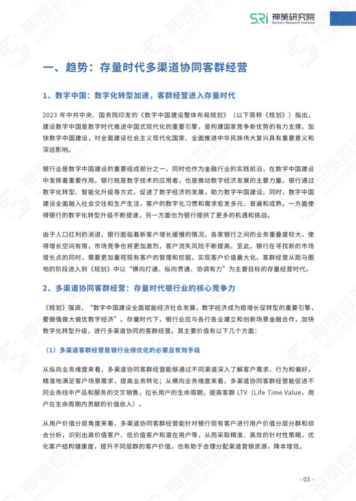 由于人口红利的消退,银行面临着新客户增长缓慢的情况。各家银行之间的业务重叠度较大,使得增长空间有限,市场竞争也将更加激烈,客户流失风险不断提高。至此,银行在寻找新的市场增长点的同时,需要更加重视现有客户的管理和挖掘,实现客户价值最大化。客群经营从跑马圈地的阶段进入到《规划》中以“横向打通、纵向贯通、协调有力”为主要目标的存量经营时代。