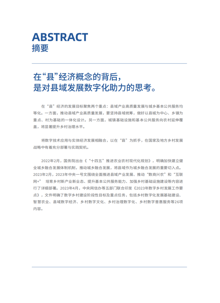 因此,在“县”经济本质上作为乡村振兴与数字经济两大战略的融合产物,通过数字化手段推动空间连接、产业发展、基础设施建设等在县域实现统筹,助力城乡关系一体设计、一并推进,既是城乡融合新理念,也是乡村振兴新实践。