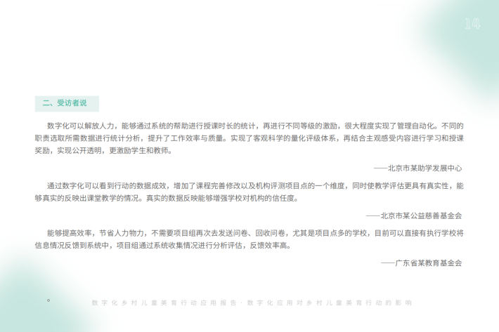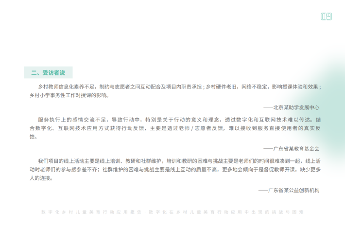 公益背景:伴随着数字技术在公益活动的赋能与体验上的升级,社会公众对公益的认知程度、参与度也不断提升,数字化拉近了公益与社会公众的距离,提升了公益参与形式的趣味性与沉浸式的体验。乡村儿童美育行动积极应用数字化技术,能够增强公众对乡村儿童美育的关注度,使之对乡村儿童美育行动提供更多的帮助,同时也能够使乡村儿童美育所蕴含的内容反哺到关注者身上,扩展乡村儿童美育行动价值影响范围。