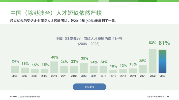 人才需求大于供给,83%的雇主表示在填补职位空缺方面存在困难。