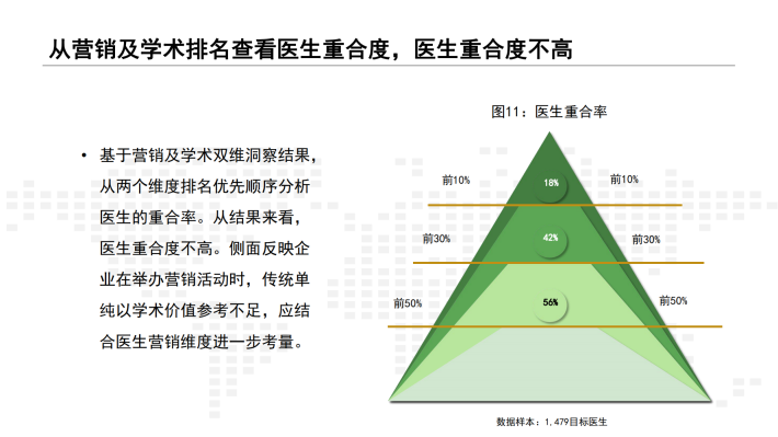 在国家对医药行业深入改革大环境基础上,政策也在不断推出和加码,企业在此大环境的背景下,精准营销、降本增效已成医药行业的主流。企业在营销活动推广过程中,在面对大量潜在医生的选择上,如何快速锁定目标医生人群,成为了企业精准营销的前提条件。受企业自身视角局限、行业医生数据散乱在各个平台等多个因素的影响,企业对于目标医生人群筛选上局限较大。目前企业主流还是以医生学术能力作为重要参考指标来评定医生,但依然存在相当比例营销活动效果不理想的现象,造成企业资源一定的浪费。企业也在不断的对营销活动效果评估进行复盘,分析在营销活动各个环节,找出痛点,规避盲区及误区。