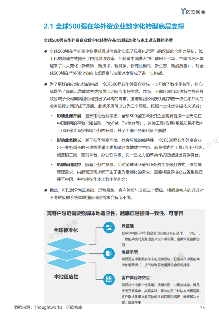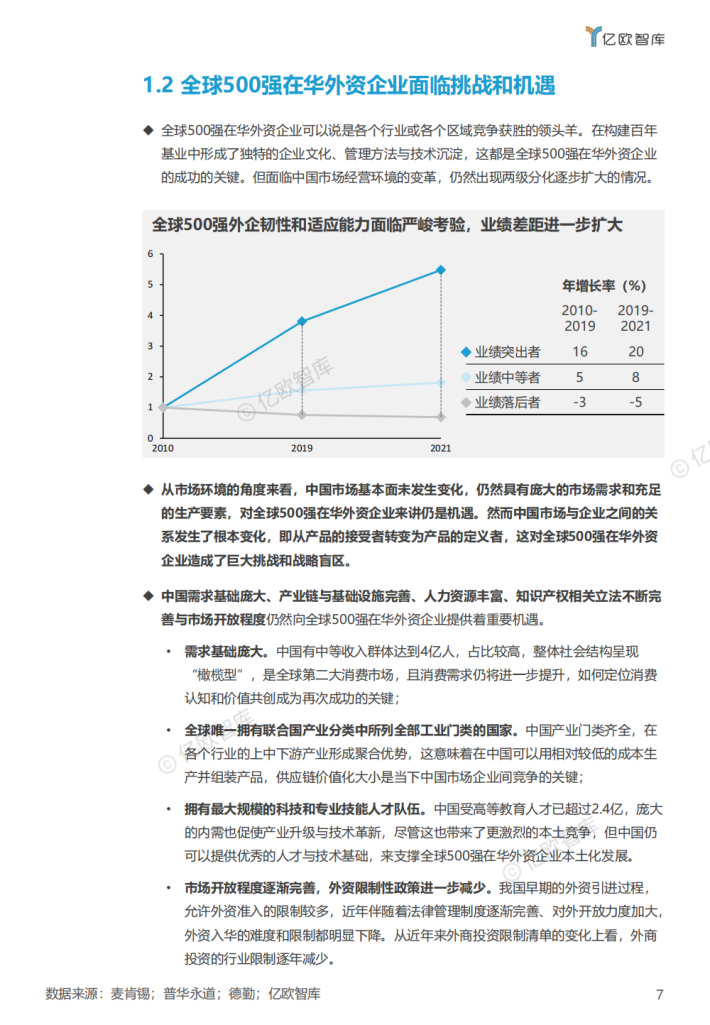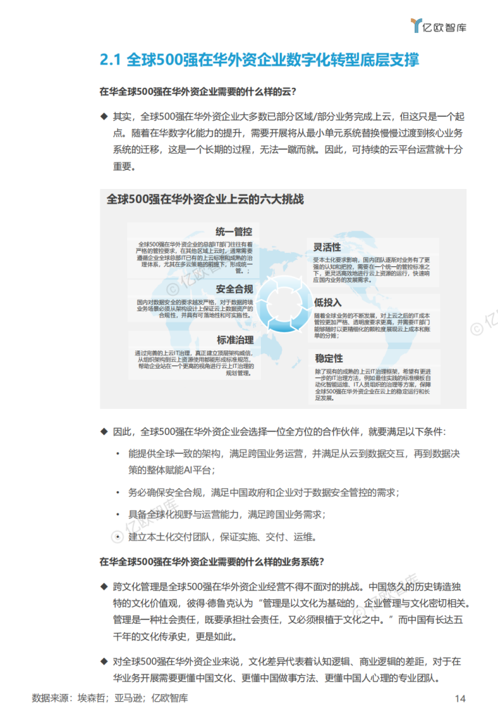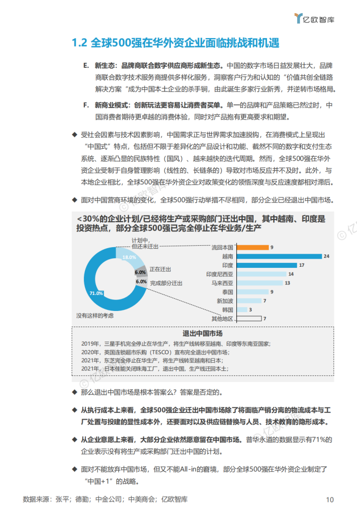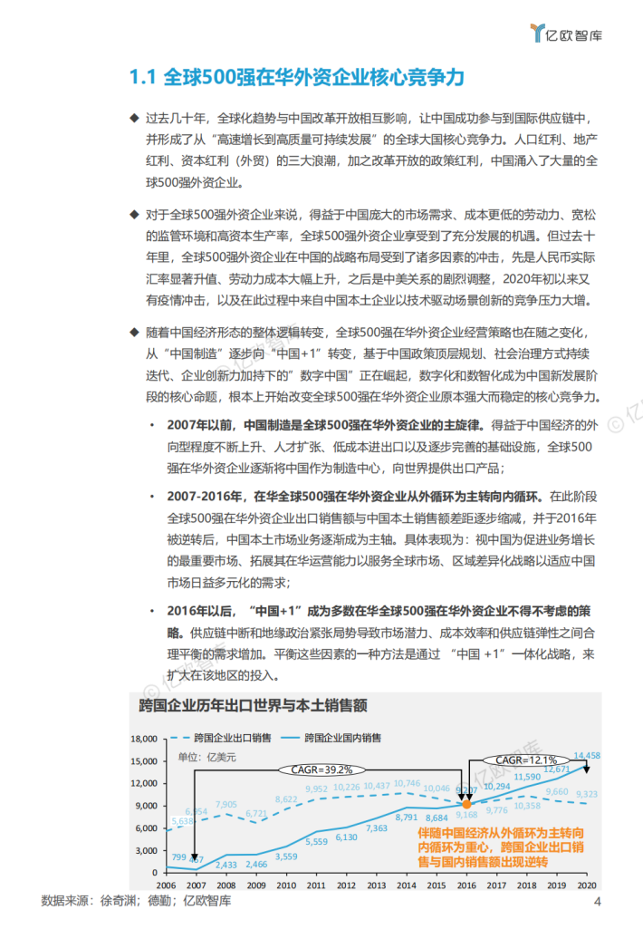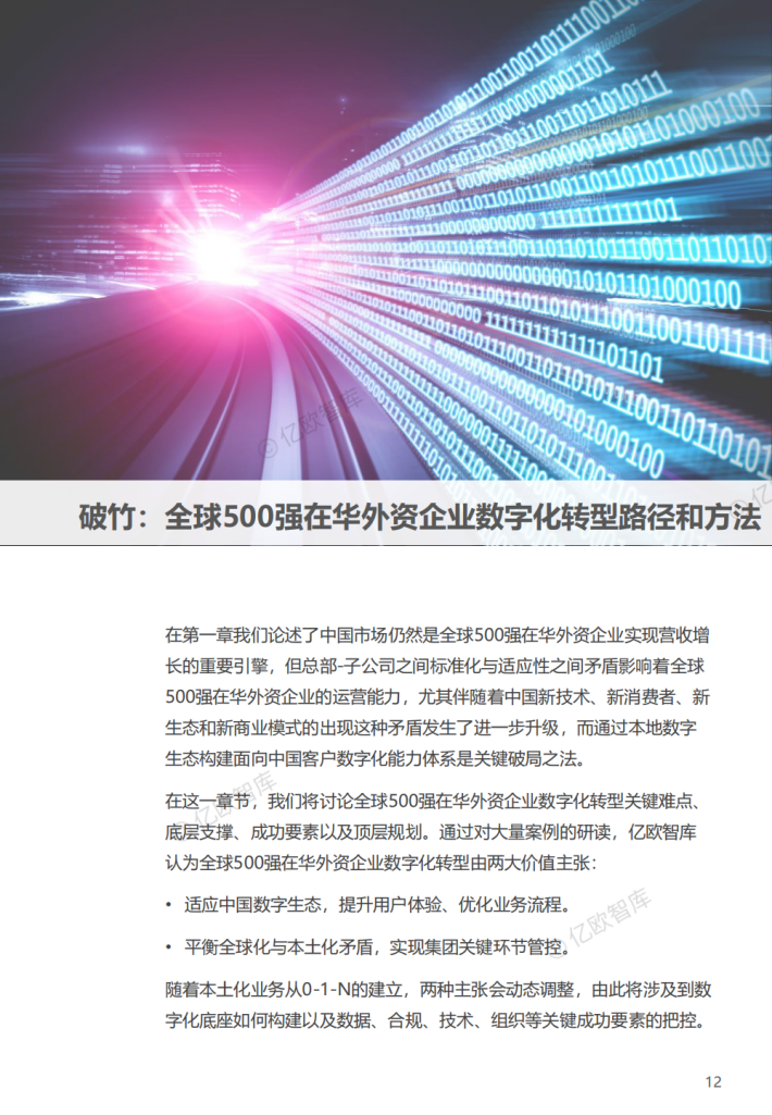 随着中国经济形态的整体逻辑转变,全球500强在华外资企业经营策略也在随之变化,从“中国制造”逐步向“中国+1”转变,基于中国政策顶层规划、社会治理方式持续迭代、企业创新力加持下的”数字中国”正在崛起,数字化和数智化成为中国新发展阶段的核心命题,根本上开始改变全球500强在华外资企业原本强大而稳定的核心竞争力。