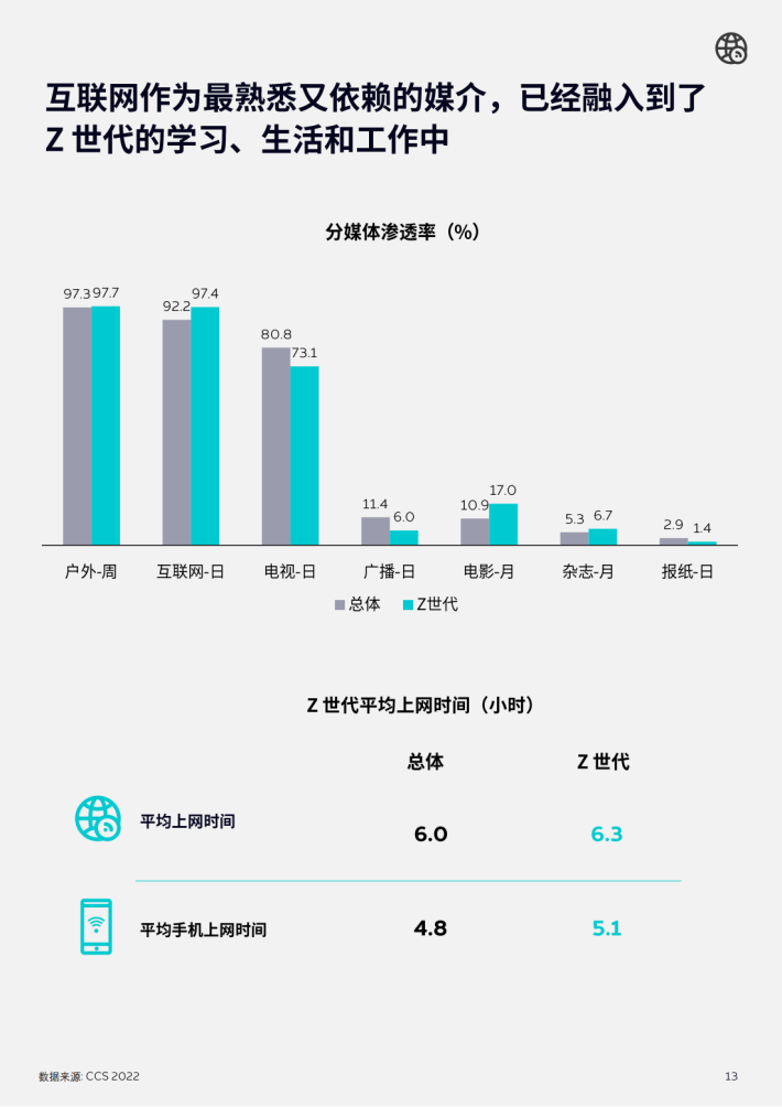 Z世代是与中国互联网共成长的一代人,互联网在Z世代中的渗透率达到97.4%。对Z世代来说,互联网的娱乐属性更加突出,且非常善于运用互联网工具。