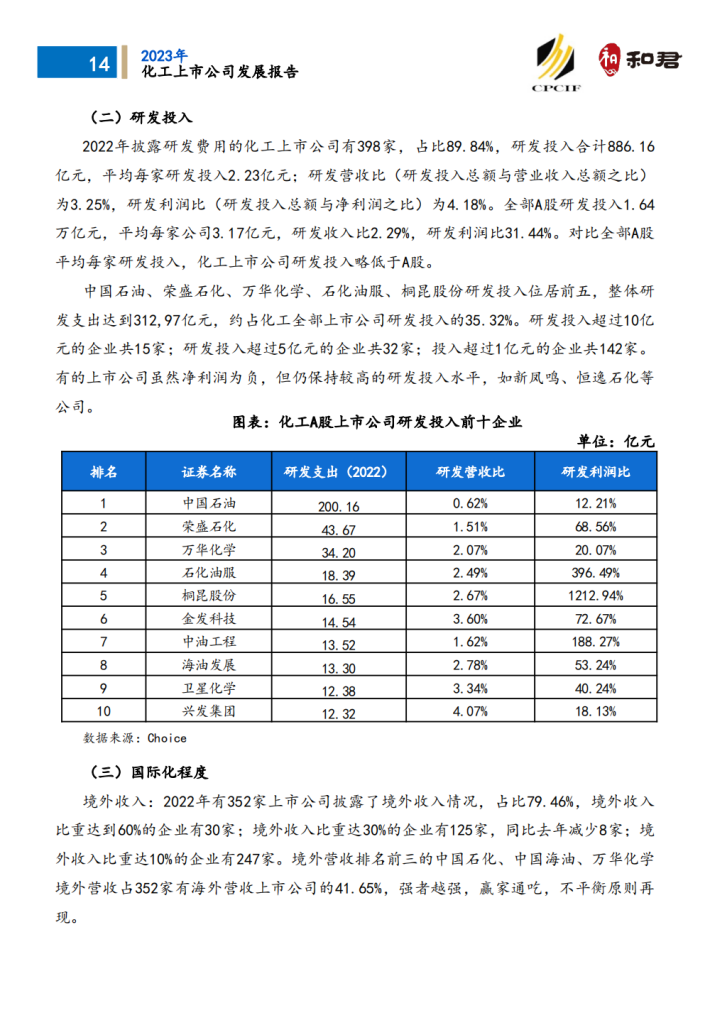 在此背景下,和君对A股化工上市公司发展状况进行全局扫描,发现如下特点: