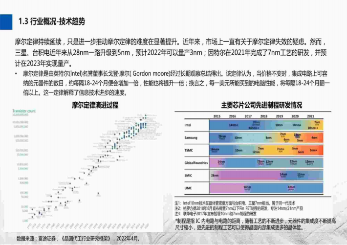 从行业关键企业来看,国外巨头垄断优势明显,国内企业积极发展破局。Gartner数据显示,2021年全球前十芯片企业市场占有率达到44.1%,其中中国地区仅有中国台湾联发科技股份有限公司上榜,市场占比仅为3.0%;中国芯片企业在芯片设计、制造及封测等全产业链条进行布局,收入规模持续攀升。