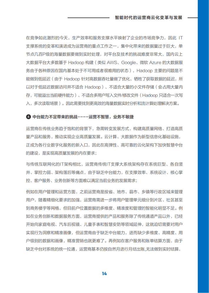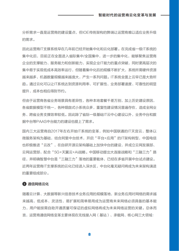 通信行业经历了长达30年的增长周期,中国的通信运营商充分享受了这期间中国庞大人口基数和消费者信息沟通需求不断升级带来的红利。随着中国的各种通信普及率趋于饱和,增量市场变为存量市场,运营商的发展增速逐步变缓;与此同时,整个通信信息系统也变得越来越复杂,这种复杂来自于客户的个性化、来自于产品的垂直化、来自于场景的多样化等。面对系统的复杂性,过往形成的传统架构,以及基于这套架构所形成的解决方案,越来越难以适应各种复杂性需求;对需求响应的周期、成本、效率难以快速满足时代的需要。