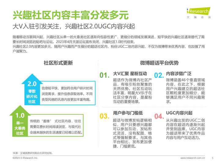 兴趣社区2.0内容更加多元,随用户兴趣而产生细分的超话社区内,粉丝UGC二创内容兴起,不仅为微博带来优秀内容,也加强了用户凝聚力。