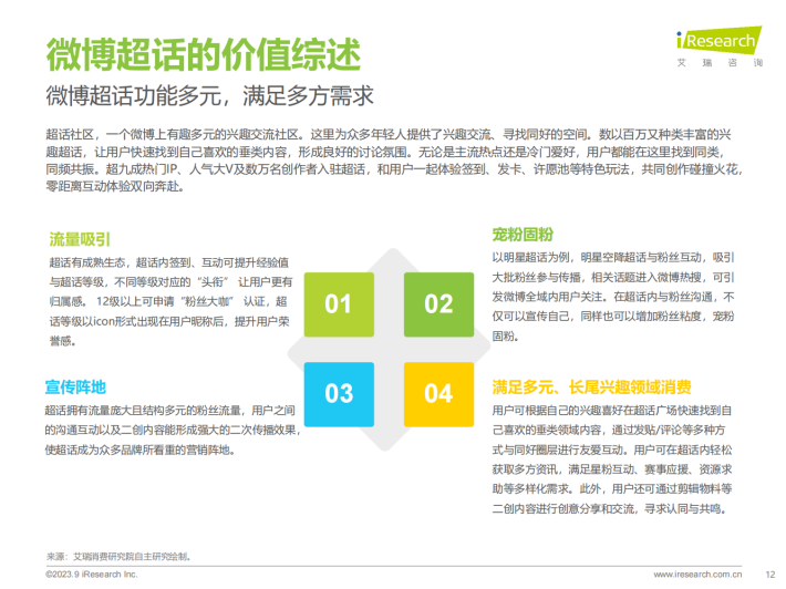 网络是Z世代了解世界,表达个性与自我价值的重要窗口,他们更愿意在兴趣社区浏览资讯内容,对日常美好生活相关内容也颇为重视。而微博超话等兴趣社区凭借繁多快速的新鲜事物、海量垂类内容满足用户多种兴趣;依靠真实靠谱的大V推荐,影响越来越多的用户。