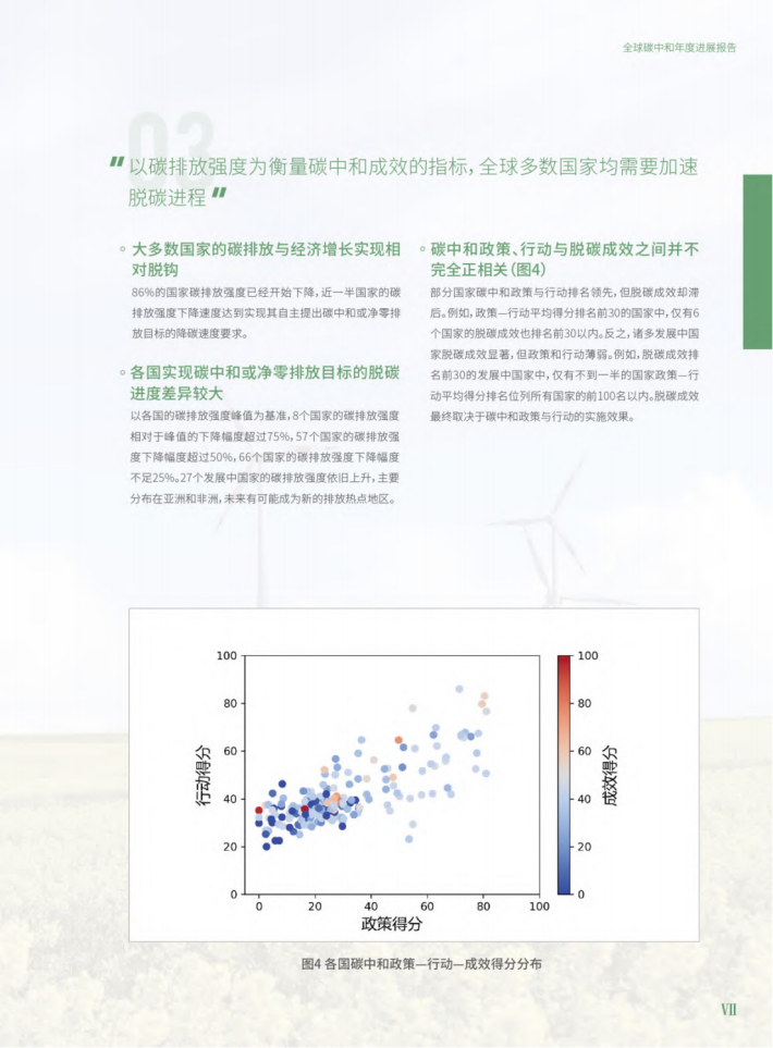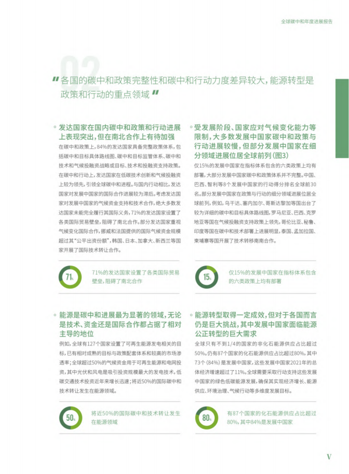 本报告引入了人均排放和历史责任等视角评估全球197个国家的碳中和目标力度,充分考虑不同排放空间分配方案。从目标、技术、气候投融资和国际合作四大维度共计53项分类指标客观评价各国碳中和行动的进展,破除了当前全球碳中和进展盘点中广泛存在的“惟目标论”。报告全面系统地呈现了全球碳中和行动的进程,展现了示范案例为克服全球关键技术和政策障碍提供借鉴,是一份深入全面反映全球碳中和进展的“说明书”。