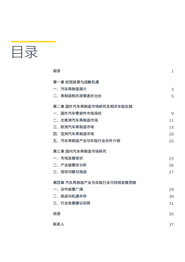 合抱之木,生于毫末;九层之台,起于累土。汽车再制造行业仍在探索中发展,可以加强对国外汽车再制造产业的研究,向消费者和社会大众普及再制造产品的知识、提倡绿色低碳理念。同时,鼓励加快制造重点技术研发、装备研发和产业化,特别是新能源汽车相关的再制造技术研发,推动零部件旧件回收和再制造产品的认证工作。另外,车险公司也应积极进行再制造相关保险产品和服务的创新。汽车再制造产业与车险行业的协作空间广阔,将是一个新兴的干亿级的市场,而且随着越来越完善的政策出台,也将给产业内企业提供良好保护,给消费者提供值得信赖的监督管理体系保证。相信只要汽车再制造行业和保险行业在政策指引之下相互扶持、进行更加广泛和深入的交流与合作,汽车零部件再制造行业和保险行业一定拥有光明的未来。