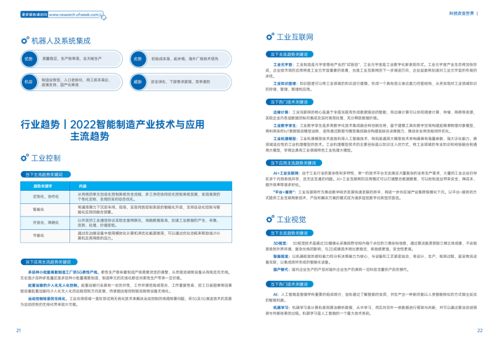 智能制造目前的主要的趋势包括智能制造核心设备的国产替代趋势、应用范围扩大化及应用场景深度化趋势等。