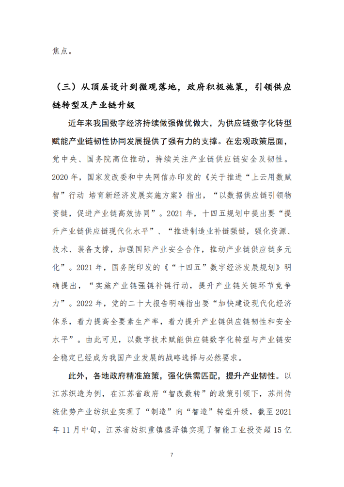 党中央、国务院高度重视我国供应链安全及产业链稳定,并作出一系列重大决策部署: “十四五”规划明确指出要“形成具有更强创新力、更高附加值、更安全可靠的产业链供应链”;党的二十大报告中也着重强调, “要着力提高全要素生产率,着力提升产业链供应链韧性和安全水平”。