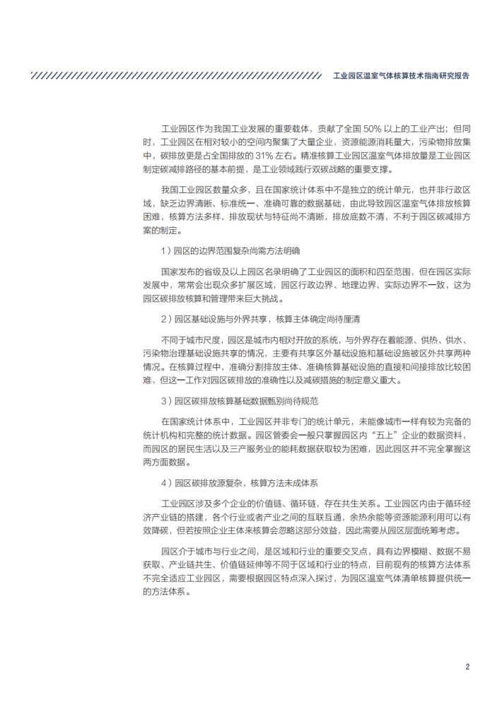 工业园区作为我国经济贡献的核心区,也是减污降碳的主战场,科学精准核算碳排放是工业园区摸清家底、科学降碳、绿色低碳发展,全面落实双碳战略的重要基石和首要任务。目前国内外工业园区温室气体核算标准尚处于起步阶段,系统开展工业园区温室气体核算方法学需求迫切且意义重大。