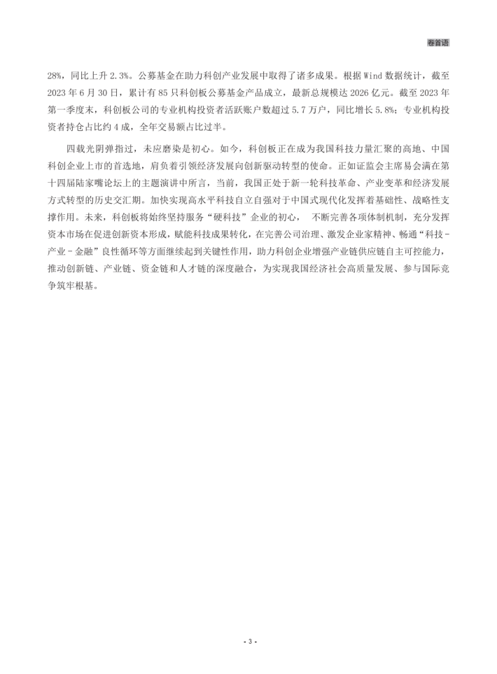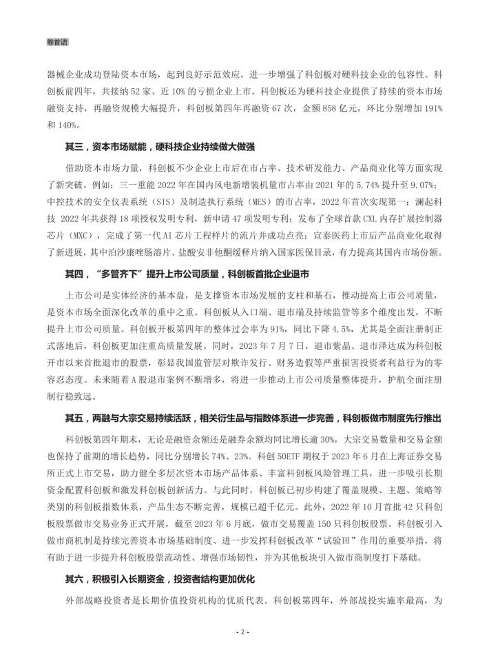 四年磨一剑,A股全面注册制正式落地。经过四年的试点实践,我国股票发行注册制实现了从“试验田”走向全市场的关键一跃,2023年2月全面注册制改革正式落地,开启了资本市场高质量发展的全新篇章。而全面注册制改革的突破口正是始于设立科创板并试点注册制。科创板开板四年以来,其引领示范、产业集聚的效应持续扩大,高质量的“硬科技”企业群体稳步壮大,由企业主导的创新成果竞相涌现、关键核心技术不断取得重要进展。科创板日益成为畅通科技、资本和产业高水平循环的纽带。