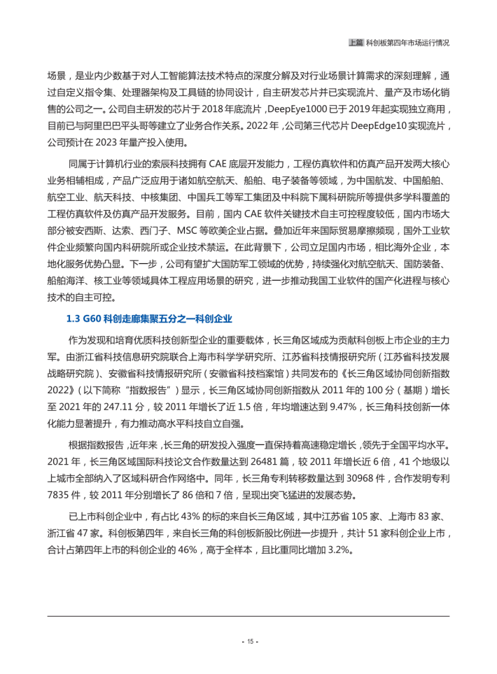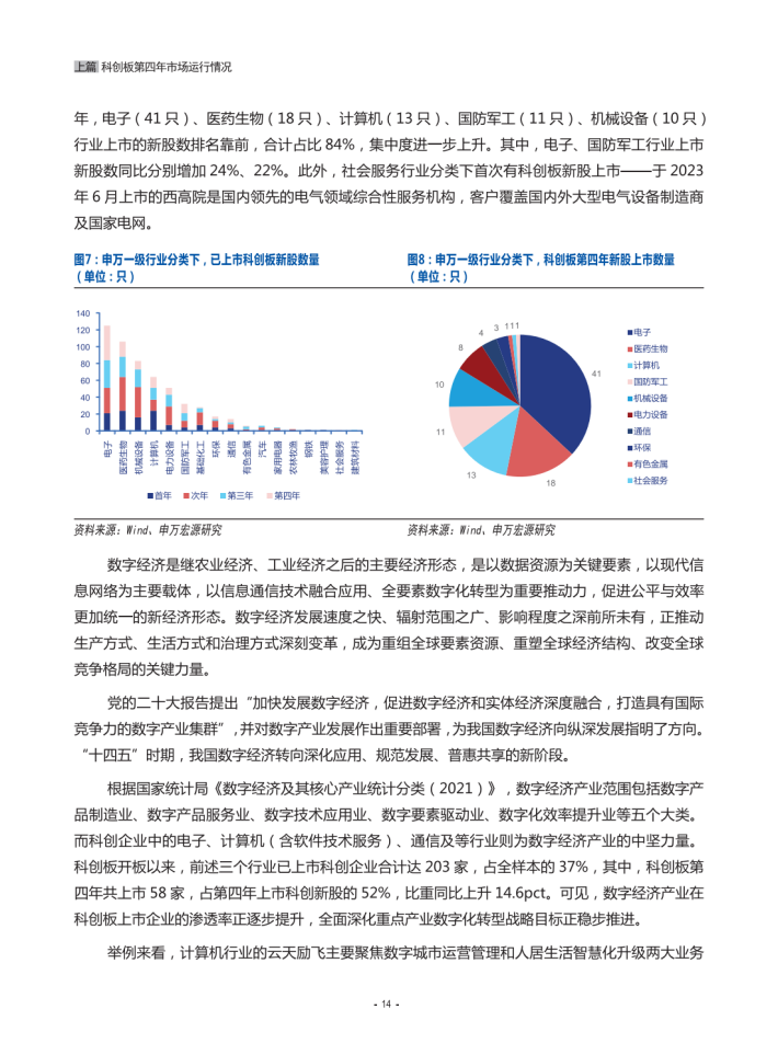 党的二十大报告提出“加快发展数字经济,促进数字经济和实体经济深度融合,打造具有国际竞争力的数字产业集群”。科创板数字经济渗透率不断提高,以电子、计算机、通信为代表的数字经济产业企业蜂拥而至,科创板第四年数字经济渗透率同比上升14.6%至52%,全面深化重点产业数字化转型战略目标正稳步推进。