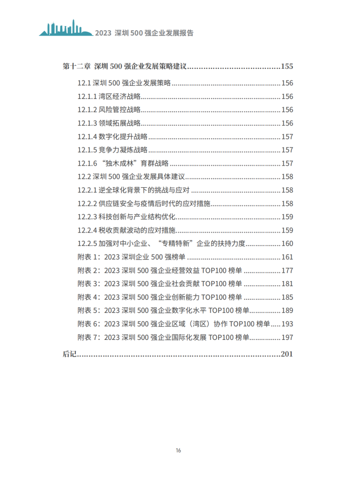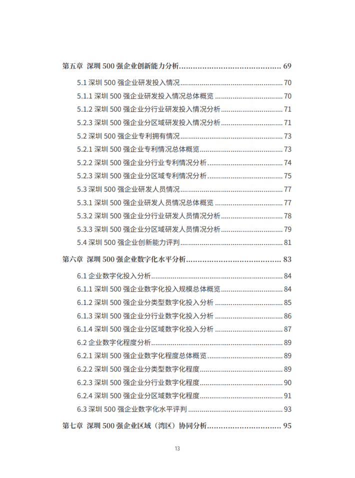 “深圳企业500强榜单”是由深圳市企业联合会、深圳市企业家协会发布的一份全面展示深圳市企业尤其是大企业年度经营情况的榜单。该榜单旨在推动深圳企业高质量发展,提升企业的影响力和品牌形象,为企业可持续增长赋能。“2023深圳企业500强榜单”的排序依据是企业2022年度的营业收入,《2023深圳500强企业发展报告》的分析依据是企业的发展潜力。发展潜力的评估采用了多种指标,包括企业的总体规模、经营效益、社会贡献、创新能力、数字化水平、区域(湾区)协同情况、国际化发展水平等。这些指标综合起来,构成了一个完整的发展潜力评估体系。