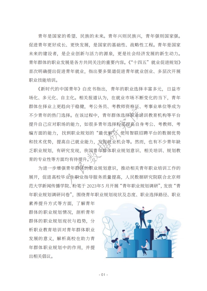 青年是国家的希望、民族的未来。青年兴则民族兴,青年强则国家强。促进青年更好成长、更快发展,是国家的基础性、战略性工程。青年是国家未来的建设者,是企业创新与活力的源泉,更是社会经济发展的新生动力。青年群体的职业发展是各方共同关注的重要内容。《“十四五”就业促进规划》首次明确提出促进青年就业,指出要多渠道促进青年就业创业、多层次开展职业技能培训。