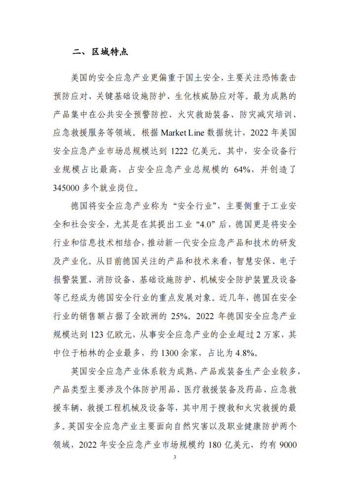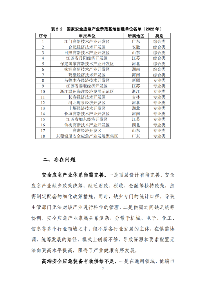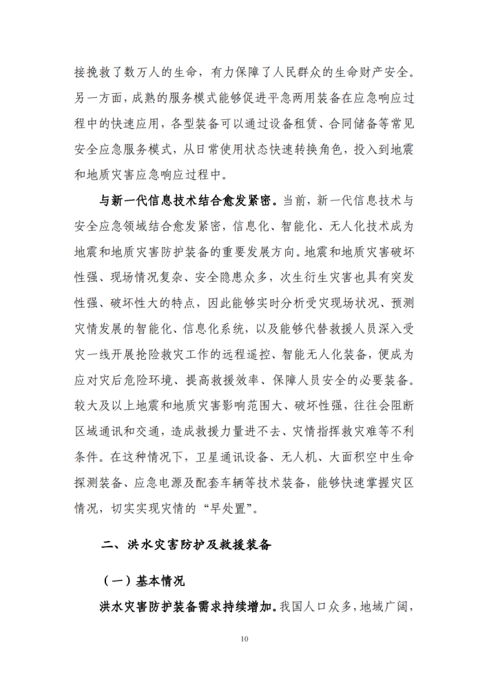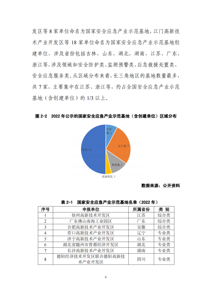 2023年,工业和信息化部、国家发展改革委、科技部、财政部、应急管理部等五部门联合印发《安全应急装备重点领域发展行动计划(2023—2025年)》,明确提出聚焦地震和地质灾害、洪水灾害等十大场景应用的重点安全应急装备,强化核心技术攻关及推广应用,加强先进适用安全应急装备供给,提高灾害事故防控和应急救援处置能力。通过十多年的培养与发展,我国安全应急产业已经形成了一定的发展规模,安全应急装备制造能力不断提升,对突发事件的保障水平也在逐步提高。同时,随着我国构建“以国内大循环为主体、国内国际双循环相互促进”新发展格局,安全应急产业示范基地创建工作的推动,我国安全应急产业区域发展分布已经从“两带一轴”的格局,正在向长三角、粤港澳、京津冀为引领,东中西部协同发展的新局面转变,所支撑和保障的领域也随着国家安全应急管理体系的健全完善。